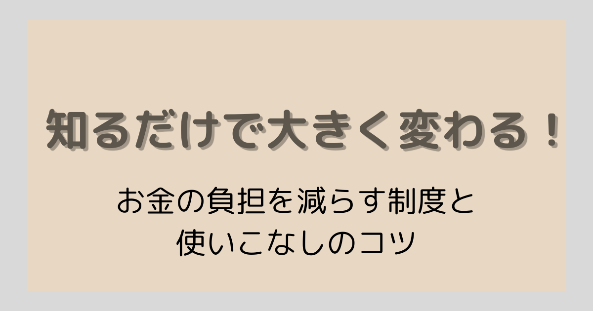 でも、国や自治体には、こうした負担を少しでもやわらげる制度がちゃんと用意されています。